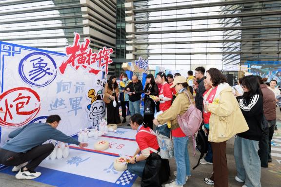 体彩“棋聚民心”主题嘉年华现场实现了全龄段、多功能覆盖。市民在直播区观看选手比赛对决,象棋爱好者现场向象棋国家大师发起攻擂挑战。在嘉年华互动区体验各类象棋游乐项目,赢取十五运精美奖品,还能欣赏演出、在玩乐中感受传统象棋文化魅力。