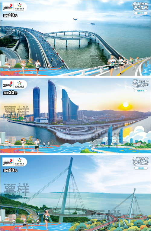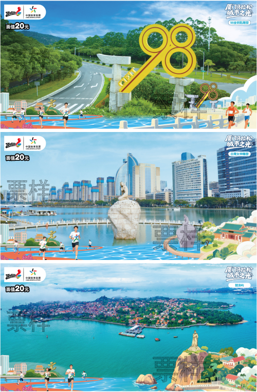 “厦门马拉松 城市之光”即开票面值20元,共有6个票面场景,每一个画面都是一处精心选取的城市风景。从被列为世界文化遗产的鼓浪屿,到蜿蜒壮丽的演武大桥;从充满活力的98金钥匙雕塑,到沿途绿意盎然的盼归塔;从神圣优雅的白鹭女神雕塑,到俯瞰城市风光的观景平台,票面生动复刻了厦门马拉松赛道“一步一景”的独特魅力。它不仅仅是一张即开票,更像是一本缩微的“厦门城市奔跑影集”,让指尖的每一次停留,都能感受赛道旁的微风与这座城市的蓬勃生机。