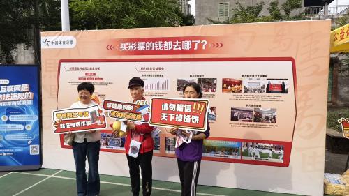 活动现场设置了主题展板等宣传物料,以图文并茂的形式,展示了体彩助力竞技体育与社会公益事业的成果,清晰阐释了体彩公益金去向与分配情况、购彩者权益保护知识、理性购彩要点等,使责任彩票理念深入人心。工作人员围绕防范非理性购彩、禁止未成年人涉彩、打击非法彩票和涉彩诈骗等内容,耐心地向社区居民进行科普宣传,切实引导公众提升对非法彩票的鉴别和抵制能力。