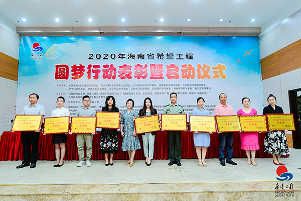 7月27日下午, 2020年海南省希望工程圆梦行动启动暨表彰仪式在海口举行。仪式现场,海南省体育彩票管理中心等爱心单位被授予“2019年海南省希望工程脱贫攻坚贡献奖”。为了支持2020年海南希望工程脱贫攻坚工作,帮助家庭贫困子女解决上大学难的实际问题,海南体彩在仪式现场捐赠30万元,持续助力海南省希望工程圆梦行动这一惠民工程。