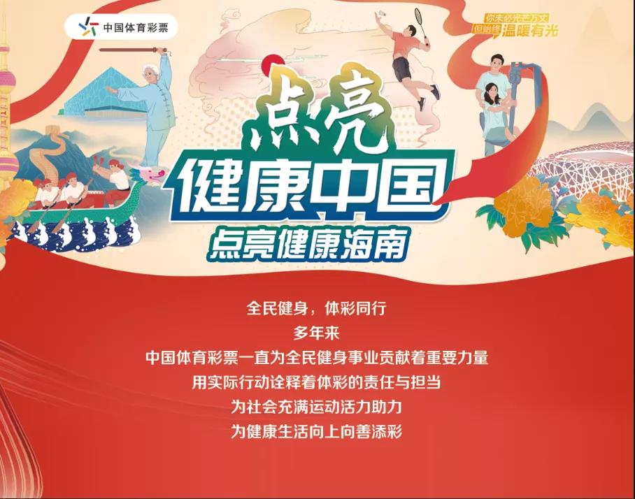 肆虐全球的新冠疫情,让人们更清晰的认识到增强体质,提高免疫力的重要性。眼下,合理饮食、科学锻炼、规律作息,提倡健康的生活方式,增强自身免疫力已成为大家的共识。中国体育彩票始终坚持“公益体彩,乐善人生”的发行理念,在第12个“全民健身日”到来之前,海南体彩将为广大民众提供便于参加、乐于参加的全民健身大舞台,享受体育运动带来的健康和快乐。