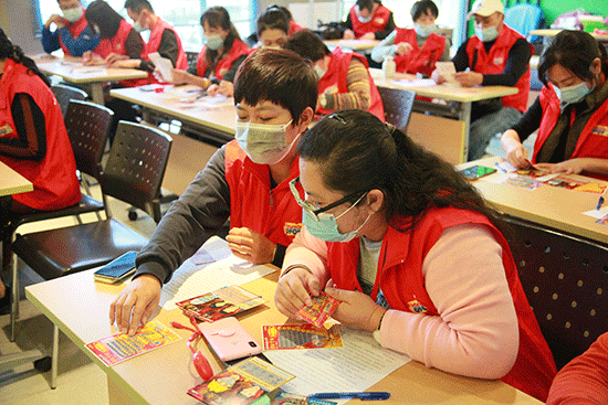 海南福彩“走近刮刮乐”观摩团统一穿着红色马甲,抵达中彩印制公司进行分组后,进入活动室观看福彩刮刮乐的宣传片。从短短几分钟的宣传片里,观摩团成员了解到了刮刮乐的发展历史、票种、中奖概率以及刮刮乐发行的意义。