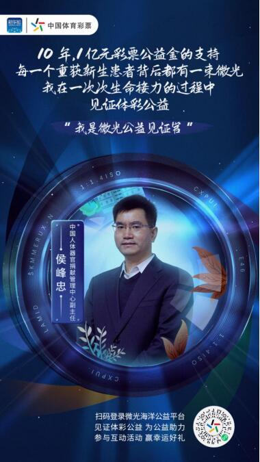 11月23日,中国体育彩票联合新华社客户端,共同发起了“寻找微光公益见证官”活动。作为一直与彩票公益金在器官捐献事业的道路上携手共进的微光见证官,侯峰忠表示:“希望大家可以与我一起贡献自己的爱心,让小小善举产生磅礴的力量。”