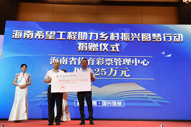 捐赠仪式现场,海南省体育彩票管理中心捐赠25万元,这些善款将用于资助我省50名品学兼优的低收入家庭学生,每人5000元助学金。