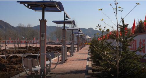沿着道路一直走下去,就是村里的智能语音健身广场。每天晚上,广场会准时打开照明设备、播放欢快的音乐,村民们利用广场上的体育设施进行着各种锻炼,运动器材会根据人的身高体重测算出运动燃烧的卡路里。