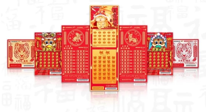 “壬寅虎20元”生肖票游戏,在延续往年生肖剪纸设计风格基础上进行了创新,将传统老虎剪纸形象与新中式设计风格巧妙融合,色调采用红金两色,渲染烘托节日喜庆气氛,最高奖金80万元。